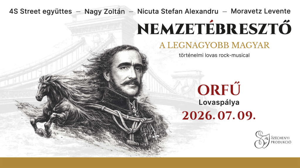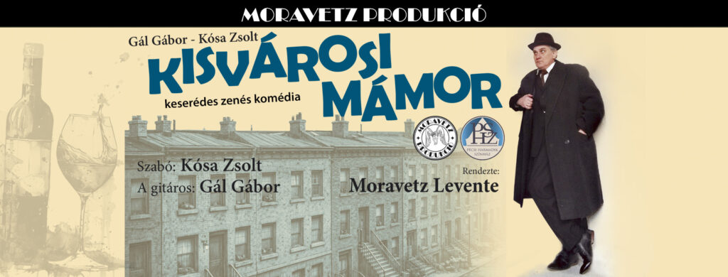 A 60-as, 70-es, 80-as éveket elmesélő, eléneklő korrajz, ma már történelem. Sok tehetséges zenészt tett tönkre a kultúr-diktatúra akkoriban. S amíg egy bizonyos színvonal fölött mégis eljuthatott néhány szerzemény a közönséghez, ma tulajdonképp bármi véleményformáló lehet, hiszen csak pénz kérdése. A történet egy festőről szól, (Sövegjártó Áron) akinek elviselhetetlen természete minden családtagját, és ismerősét az őrületbe kerget. Első felesége tengerbe veszett, a második felesége haditudósítóként tűnt el valahol Afganisztánban, s mivel holttá nyilvánították, így harmadszor is megnősült. A történet egy festőről szól, (Sövegjártó Áron) akinek elviselhetetlen természete minden családtagját, és ismerősét az őrületbe kerget. Első felesége tengerbe veszett, a második felesége haditudósítóként tűnt el valahol Afganisztánban, s mivel holttá nyilvánították, így harmadszor is megnősült. A történet egy festőről szól, (Sövegjártó Áron) akinek elviselhetetlen természete minden családtagját, és ismerősét az őrületbe kerget. Első felesége tengerbe veszett, a második felesége haditudósítóként tűnt el valahol Afganisztánban, s mivel holttá nyilvánították, így harmadszor is megnősült. A “Gyertyafény keringő” az 1920-as évek egyik legkedveltebb slágere volt, amely ebben a zenés vígjátékban csendült fel először, hogy elinduljon világhódító útjára. Bejárta Európát, majd áthajózott a tengerentúlra, hogy meghódítsa Amerikát. A történet egy festőről szól, (Sövegjártó Áron) akinek elviselhetetlen természete minden családtagját, és ismerősét az őrületbe kerget. Első felesége tengerbe veszett, a második felesége haditudósítóként tűnt el valahol Afganisztánban, s mivel holttá nyilvánították, így harmadszor is megnősült. Szerelem és politika: az élet két fontos mozgatórugója, így a művészet kimeríthetetlen ihletforrása is. Moravetz Levente íróként szenvedélyesen kutatja a magyar történelem sorsfordulóit és karizmatikus egyéniségeinek életét, akiket kellő tisztelettel emel történelmi színműveinek főszereplőivé, méghozzá hús-vér emberként, szeretettel és sok humorral megjelenítve őket. Valahol a Mátra alján lakik nénje. (Mint a mesében.) Szépen, lassan telnek napjai. (Mint a mesében.) Nyugdíjazása után azonban úgy dönt, nem engedi, hogy leírják. (Mint a mesében.) Ezért megalapítja a Csöpike Csibéi Betéti Társaságot – rövidítve Csöcsi Bt.-t – melynek fő profilja…. (… és ez innentől már nem mese :-)). A történet egy festőről szól, (Sövegjártó Áron) akinek elviselhetetlen természete minden családtagját, és ismerősét az őrületbe kerget. Első felesége tengerbe veszett, a második felesége haditudósítóként tűnt el valahol Afganisztánban, s mivel holttá nyilvánították, így harmadszor is megnősült. A „Csodaszarvas”, a honfoglalás előtti időkbe kalauzolja el nézőit. Igazi, látványos, családi lovas-musicalt tervezünk, mely történelmünk kezdeti, eddig csak „regélt” időszakában játszódik. Arany János “Buda halála” című műve nyomdokán, egy olyan világot tárunk nézőink elé, melyben egyformán megtalálja majd örömét minden korosztály. A Nemzetébresztő – a legnagyobb magyar egy szenvedélyes, megrendítő és mai történet arról az emberről, aki nemcsak a hazáját akarta felrázni, hanem önmagát is. Széchenyi István alakja ebben az előadásban nem történelmi távolság, hanem hús-vér ember: vívódó, bátor, esendő és mégis felemelő. A darab hív, hogy újra ránézzünk arra, mit jelent magyarnak lenni – és mit jelent/jelentene, tenni érte.